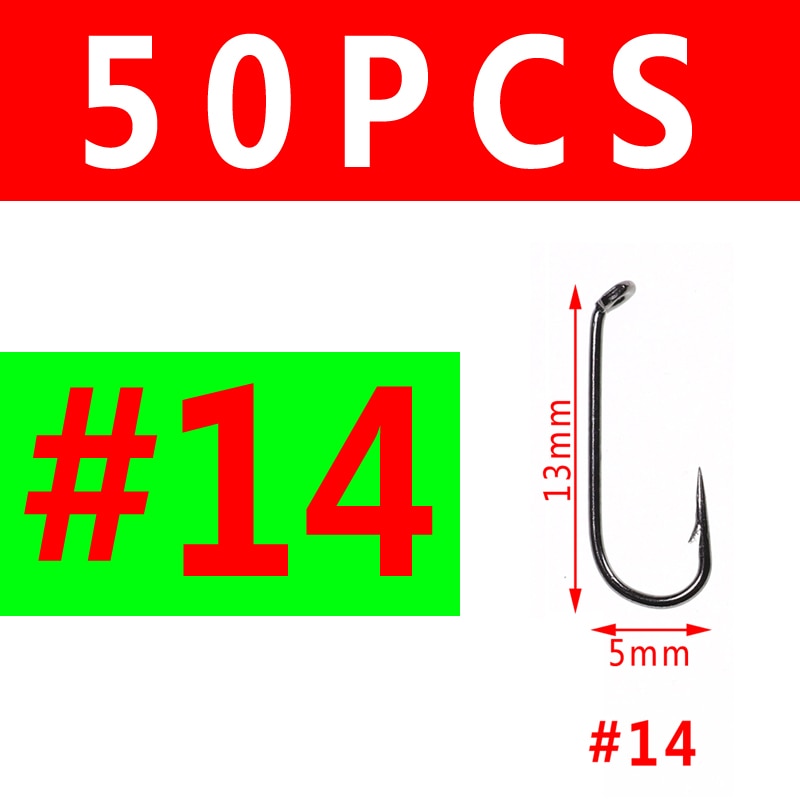 Bimoo 50pcs Fly Fishing Dry Fly Hook 2X Standard Wire Nymph Hook Black Nickel Finish Fly Tying Material Sizes 14 16 18 20 22